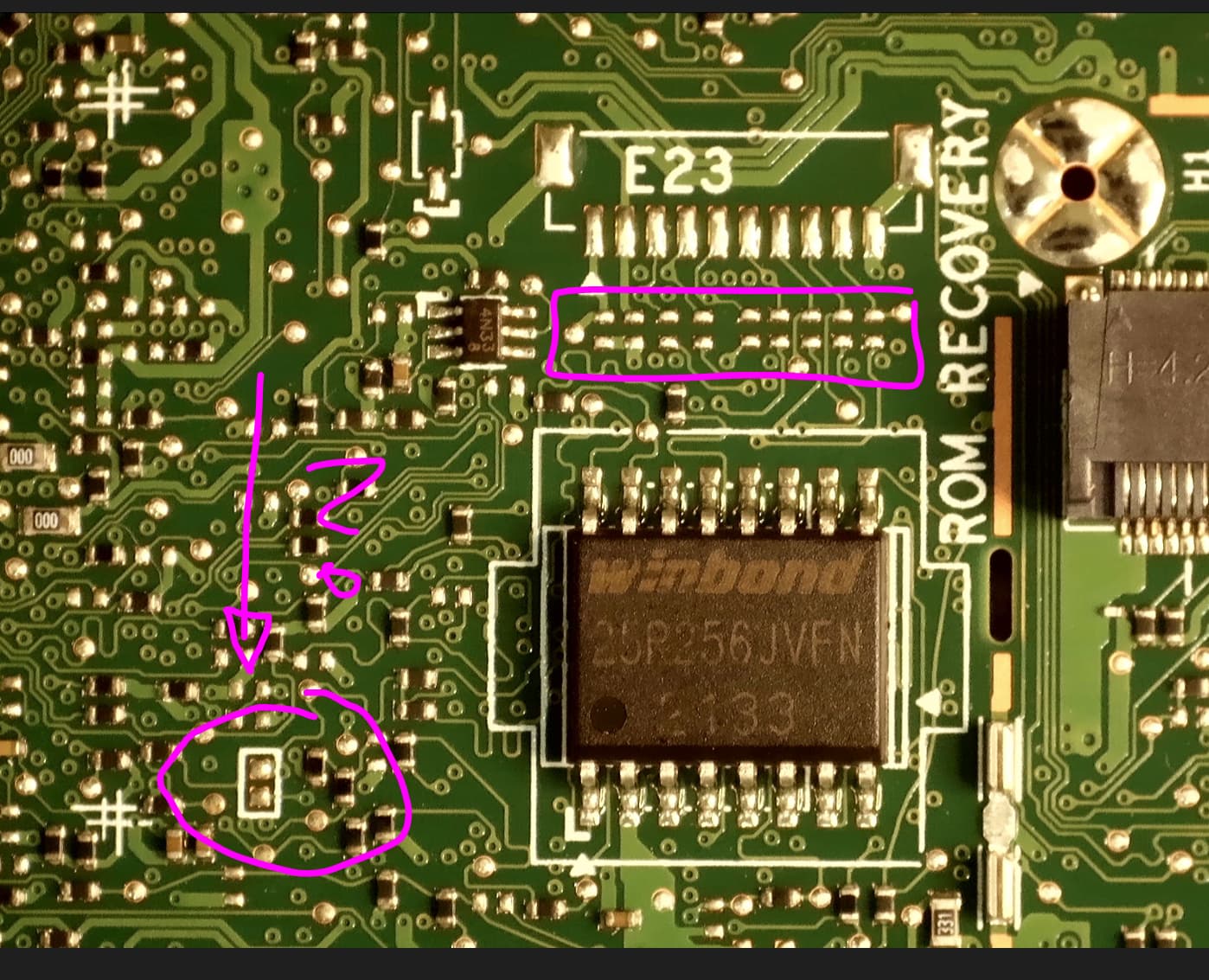 If you look at the various images of the motherboard, it looks like the board has a physical blue pin service mode for the 35 W and 65 W system boards, but perhaps not for the Discrete system board - hard to tell.