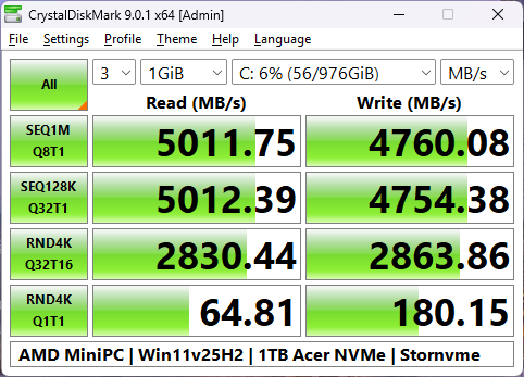 Contrary to my previous test with a Geekom AMD Mini-PC the “Native NVMe Disk Drive Support” gave my X570 chipset AMD-PC a clear boost of the 4K and 4K-64 Thread performance while reading and writing.