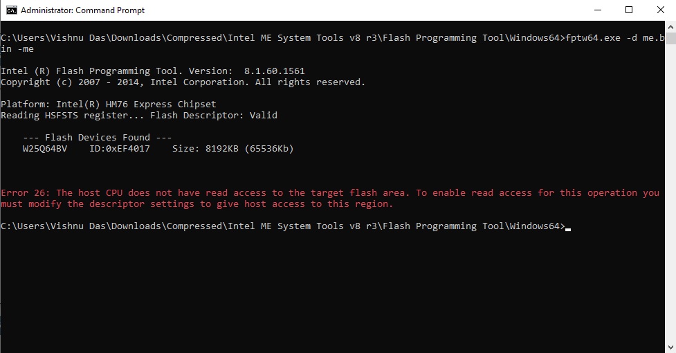C:\Users\Vishnu Das\Downloads\Compressed\Intel ME System Tools v8 r3\Flash Programming Tool\Windows64>fptw64.exe -greset