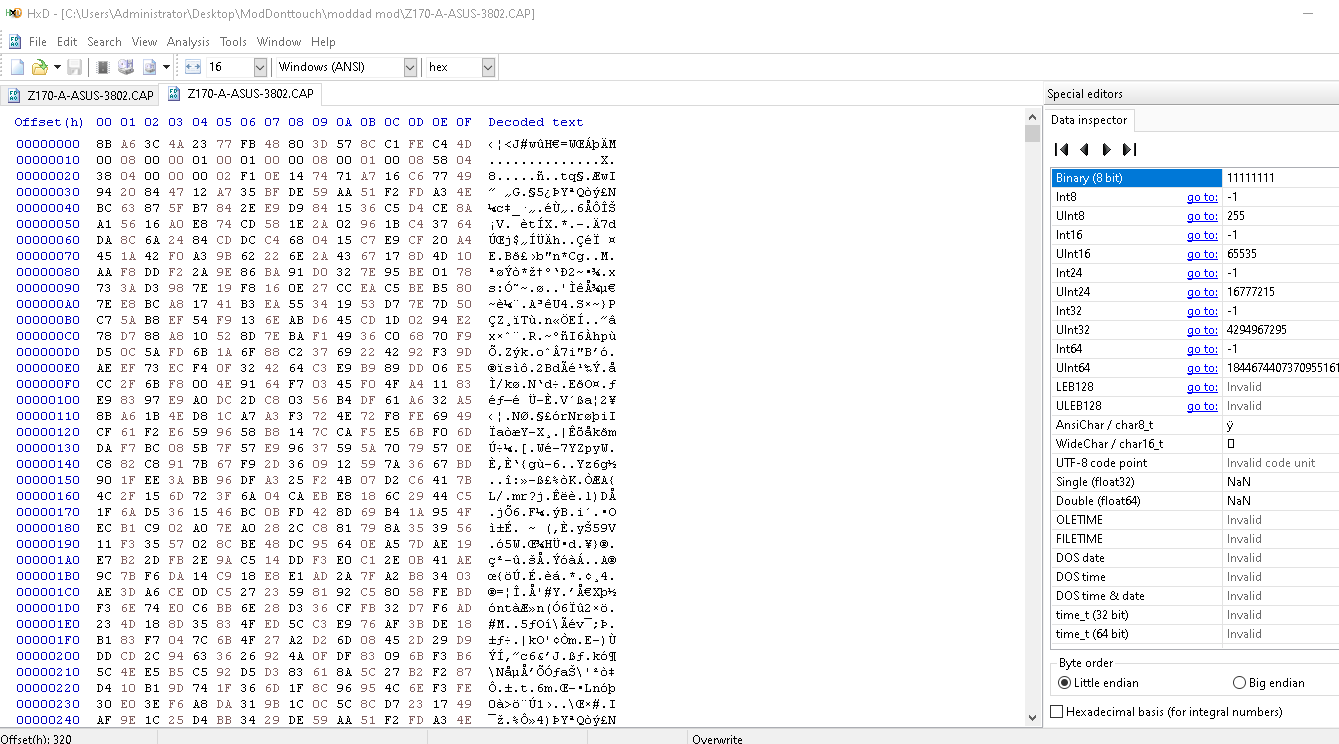Okay so I copied all the 0x800 code from the og asus cap and did “paste write” on the modded .bin file and saved it as .CAP but still no file size change, what am I missing?